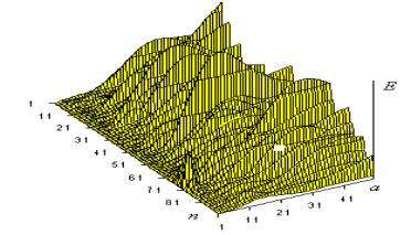 Рис. 4. Энергии сегментов вейвлет-коэффициентов W(а,b) слова