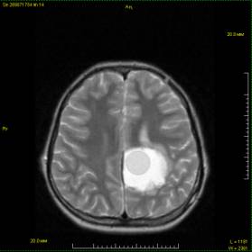 клинического течения заболевания (медленно нарастающих общемозгового и локального неврологических синдромов, эпилептических припадков диффузного и местного характера) был установлен диагноз объемного процесса головного мозга опухолевой