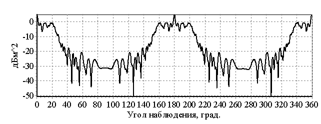 На рис. 6 показана двухпозиционная диаграмма рассеяния, рассчитанная в программе FEKO. Этот рисунок надо сравнить с рис.3b.