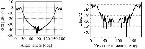 На рис.7 показаны однопозиционные диаграммы рассеяния, рассчитанные в двух программах без учета облучателя.