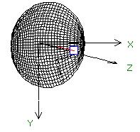 Схематически антенна показана на рис.1. Далее используются обозначения (см. рис.1): Dx, Dy – диаметры рефлектора по осям X,Y; Fp – фокусное расстояние рефлектора; Ah, Bh, Lh – размеры раскрыва рупора облучателя в плоскостях Е и Н и его длина; GoX – угол между осью рупора и фокальной осью рефлектора; Ymin. – расстояние от фокальной оси рефлектора до центра раскрыва несимметричного рефлектора. На рис.1 фокальная ось совпадает с осью Z. Антенна облучается электромагнитной волной (ЭМВ), распространяющейся из дальней зоны под углом Qq по отношению к фокальной оси рефлектора. Поле рассеяния рефлектора рассчитывается в дальней зоне как функция угла наблюдения Qp. Диаграмма рассеяния (ДР) рассматривается как зависимость ЭПР антенны в направлении Qp.