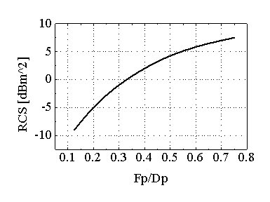 Из рис.8 и других результатов следует, что при увеличении YYmin от 0 до 0,75 Dp значение однопозиционной ЭПР уменьшается с 6 дБм^2 до -18 дБм^2, т.е. на 24 дБ.