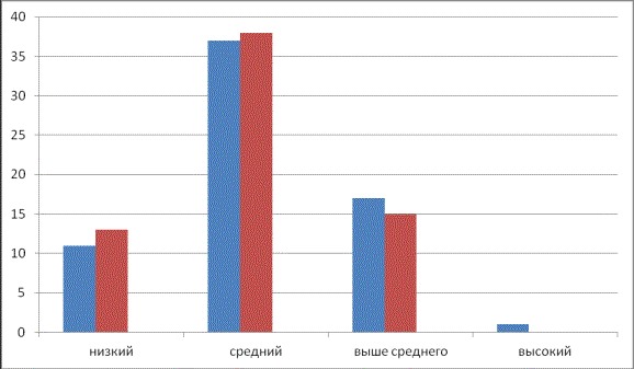 экспериментальной и контрольной группах практически одинаковый. Это обстоятельство дает нам возможность провести на этих группах и формирующий эксперимент, что и будет выполнено в рамках дальнейшей