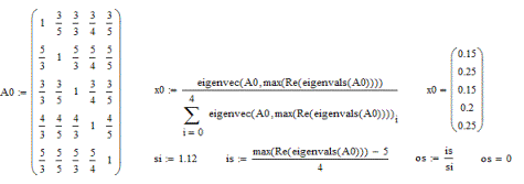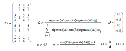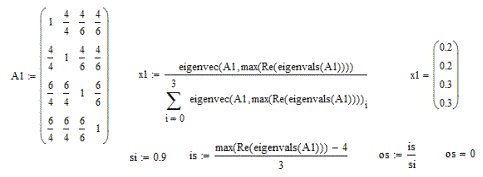 Дані матриці введено в базу даних програмного пакета Мathcad [1, c.33-38]. За допомогою вбудованого в