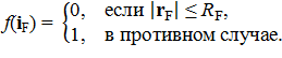 Элементы матрицы оператора принимают единичные значения в пределах круга с радиусом оператора RF, построенного вокруг центрального элемента матрицы: