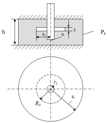 Для простоты считаем, что скважина находится в центре кругового пласта