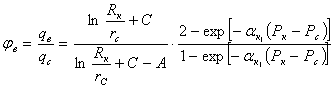 Относительное увеличение дебита qв по сравнению с qc, т.е. эффект влияния трещины, выражается отношением