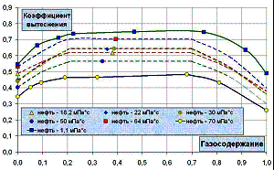 Рис. 6 - Зависимости коэффициента вытеснения нефти различной