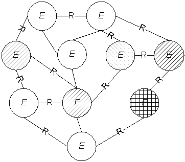 Такая структура удобна тем, что позволяет применять бинарный подход, теорию графов и топологию для анализа. При этом следует отметить, что показано на рис.1, наличие разных по качеству и функциям элементов, а также связей и характера их направленности (односторонние двухсторонние). Эта модель показывает на то, что система состоит из отдельных элементов и связей между ними. Она используется, когда необходим анализ связей и элементов системы. Ее преимущество - простота анализа.