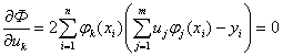 производных по компонентам обобщенного решения к нулю (условия минимума):