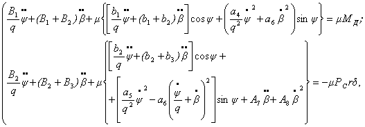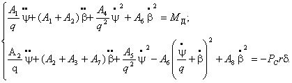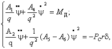 уравнений движения инерционной передачи с рычажным механизмом в случае действия
