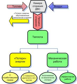 Для обсуждения возможных путей реализации сказанного, прежде всего, рассмотрим процесс преобразования термохимической энергии топлива в поршневых ДВС.