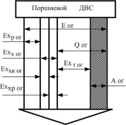 эта энергия показана уходящей из поршневого ДВС соответствующей суммой полос.