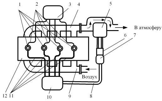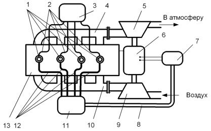 впускной коллектор; 11 – ресивер; 12 – воздухопроводы; 13 – поршневой двигатель