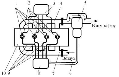давления; 8 – воздушный трубопровод; 9 – компрессор низкого давления; 10 –
