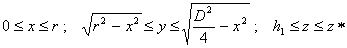 как сумма двух объемов с соответствующими проекциями на плоскость XOY