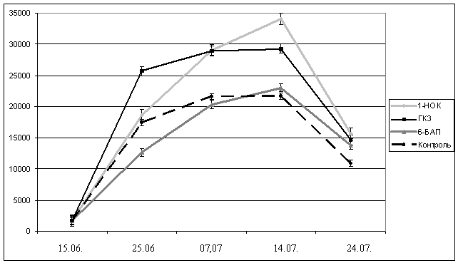 поверхні зумовило підвищення продуктивності культури. Зокрема за дії 1-НОК