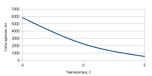 сопровождалось повышением силы адгезии. Так, при +5 0С адгезионная