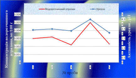 атразину, активністі уреази, концентрація азоту рухомого та розчиненого