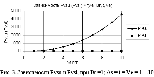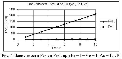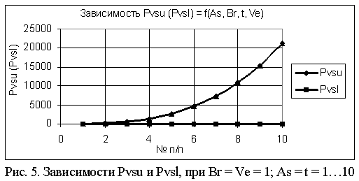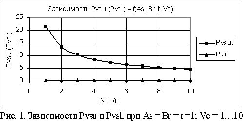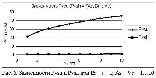 а все другие переменные остаются неизменными, т.е. Br = t = Ve = 1 = const, что и представлено на рис. 4. В этом случае значения Pvsu и Pvsl