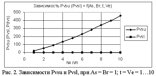 только в 2 раза при постоянных одинаковых значенияx As = Br = t = 1 = const и увеличения Ve в 10 раз (рис. 1).