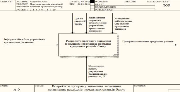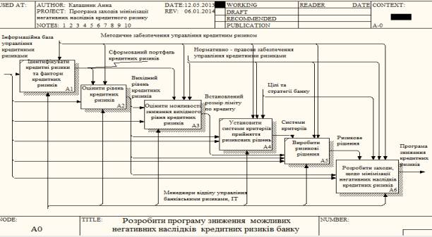 інтерфейсні дуги: вхід: інформаційна база управління кредитними ризиками;
