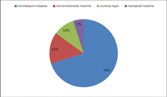 займають поліетиленові пакети – 15%, скло – 10% і паперові пакети - 5% (рис.