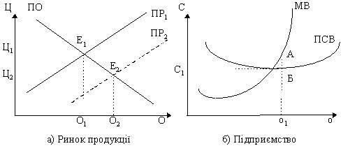 ринкових попиту й пропозиції (точка Е1) визначає ціну на продукцію (Ц1). При