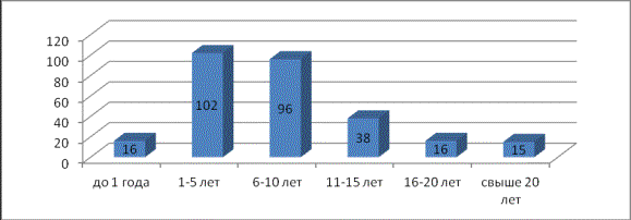 Вторая по численности категория служащих имеет стаж работы от 6 до 10 лет