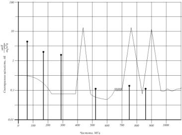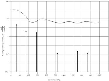 діапазон побічних випромінювань (до 800 МГц), тому для наочності використаємо