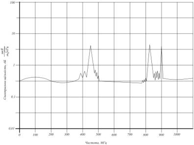 імітуванні впливу на генератор зовнішніх наведень з частотами 425, 806 та 900