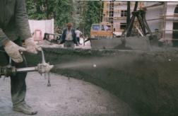 реконструкции зданий и сооружений г. Харькова способом мокрого торкретирования.