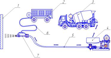 Рис. 3. Технологический комплект оборудования для выполнения торкрет-работ с использованием максимальной фракции