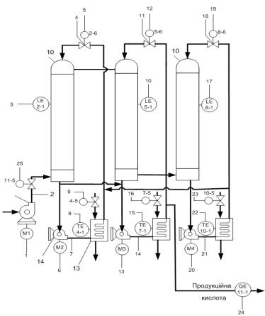насосу 1. Контур 2 забезпечує контроль рівня нітрозних газів в абсорбційній