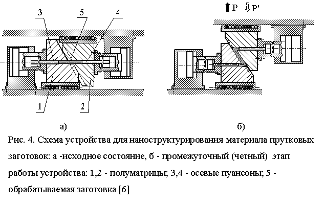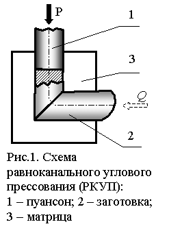 является интенсивное пластическое деформирование методом равноканального углового прессования (РКУП), одна из схем
