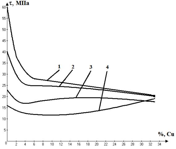 Дальнейшее повышения содержания меди до 33% не приводит к заметному