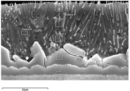 прилегающего к никелю, составляет 1,5-2,5мкм, а толщина слоя Al3Ni –