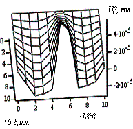 значень вони досягають в зоні дії навантажень. При цьому радіальні переміщення