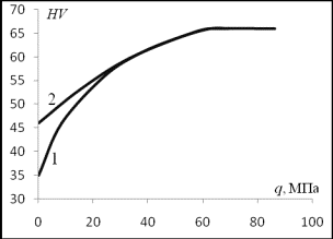 на трение закономерность роста микротвердости (рисунок 2, кривая 2) совпадает с