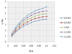 поле напружень зсуву від різних значень чисел обертів(рис. 4. а, б). Відповідно літературних даних