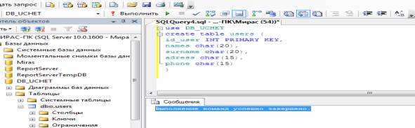DATABASE DB_UCHET командасы арқылы DB_UCHET атты деректер қорын