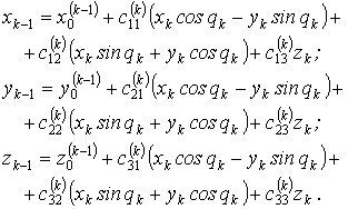 Координати довільної точки (або її радіус-вектор) k-ї ланки в системі