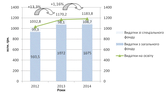 освіту бюджету м. Дніпропетровська за 2012-2014 рр. наведена на рисунку 1.