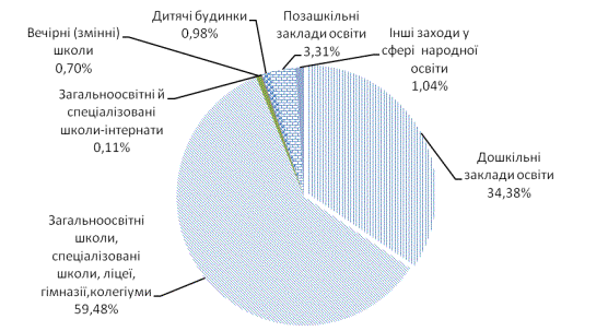 освіти – 34,38%; позашкільні заклади освіти – 3,31%; дитячі будинки –