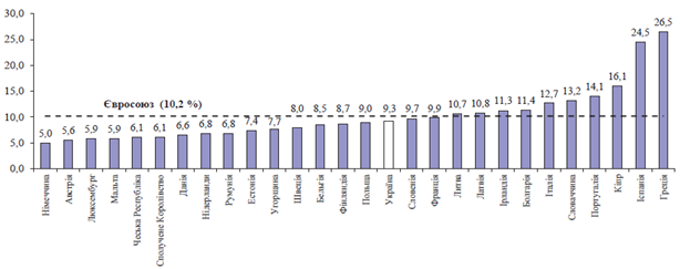 Німеччині – 5,0%. Україна займала 13 місце серед країн Європейського Союзу з рівнем