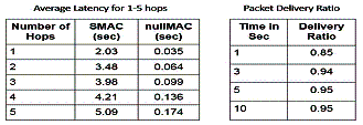 Null-MAC doesn’t send acknowledgements and SMAC performs the RTS/CTS handshakes