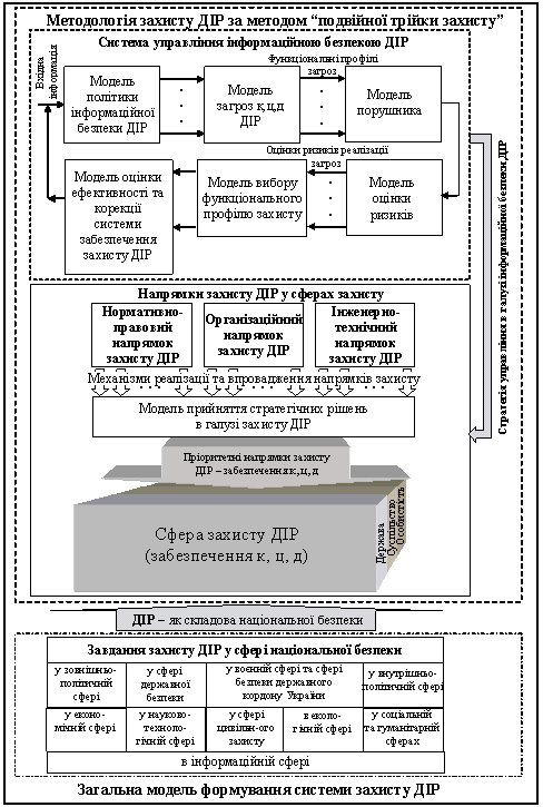 все вище викладене cтруктурно-логічну схему реалізації системи захисту ДІР за методологією “подвійної трійки захисту” можна
