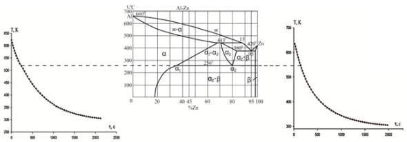 процессы охлаждения, температурная зависимость теплоемкости сплавов Zn5Al, Zn55Al, легированных различной концентрацией скандием, иттрием, празеодимом, церием,