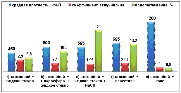 композиции «стеклобой : жидкое стекло», «стеклобой : микросфера : жидкое стекло»