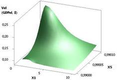 Рис. 8. Vel (GDPel) = f(Х1, Х2, Х3, Х4, Х5) Х1 = 1, Х2 = Х3 =
